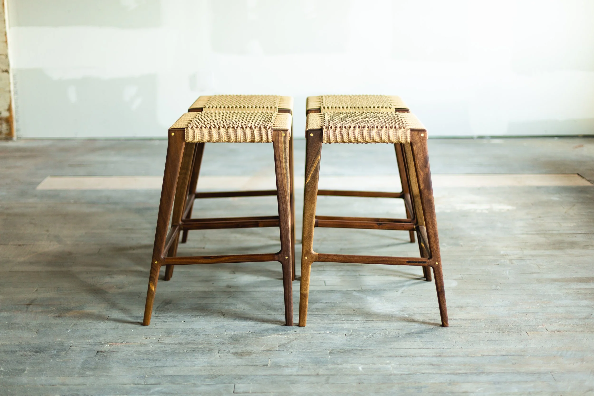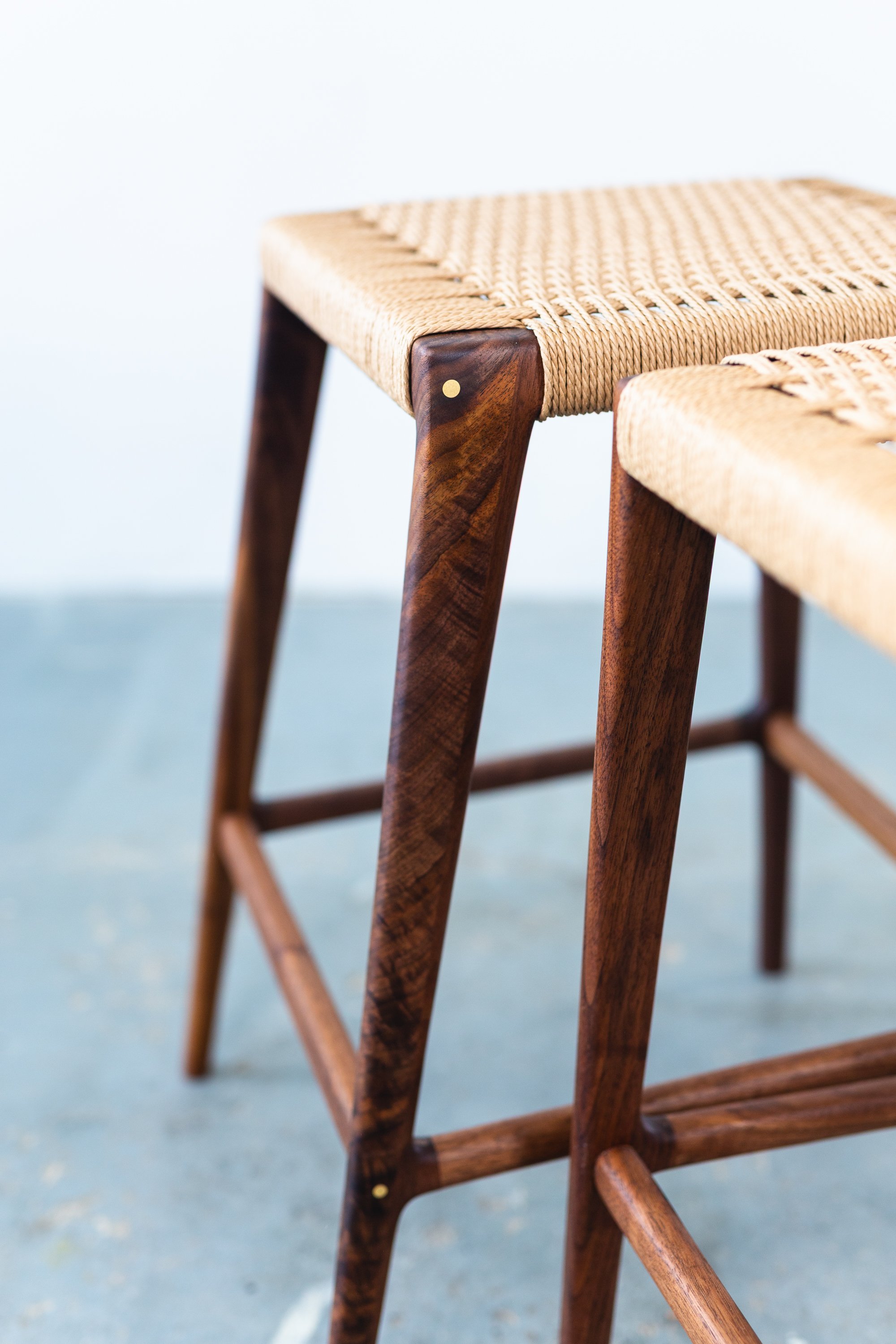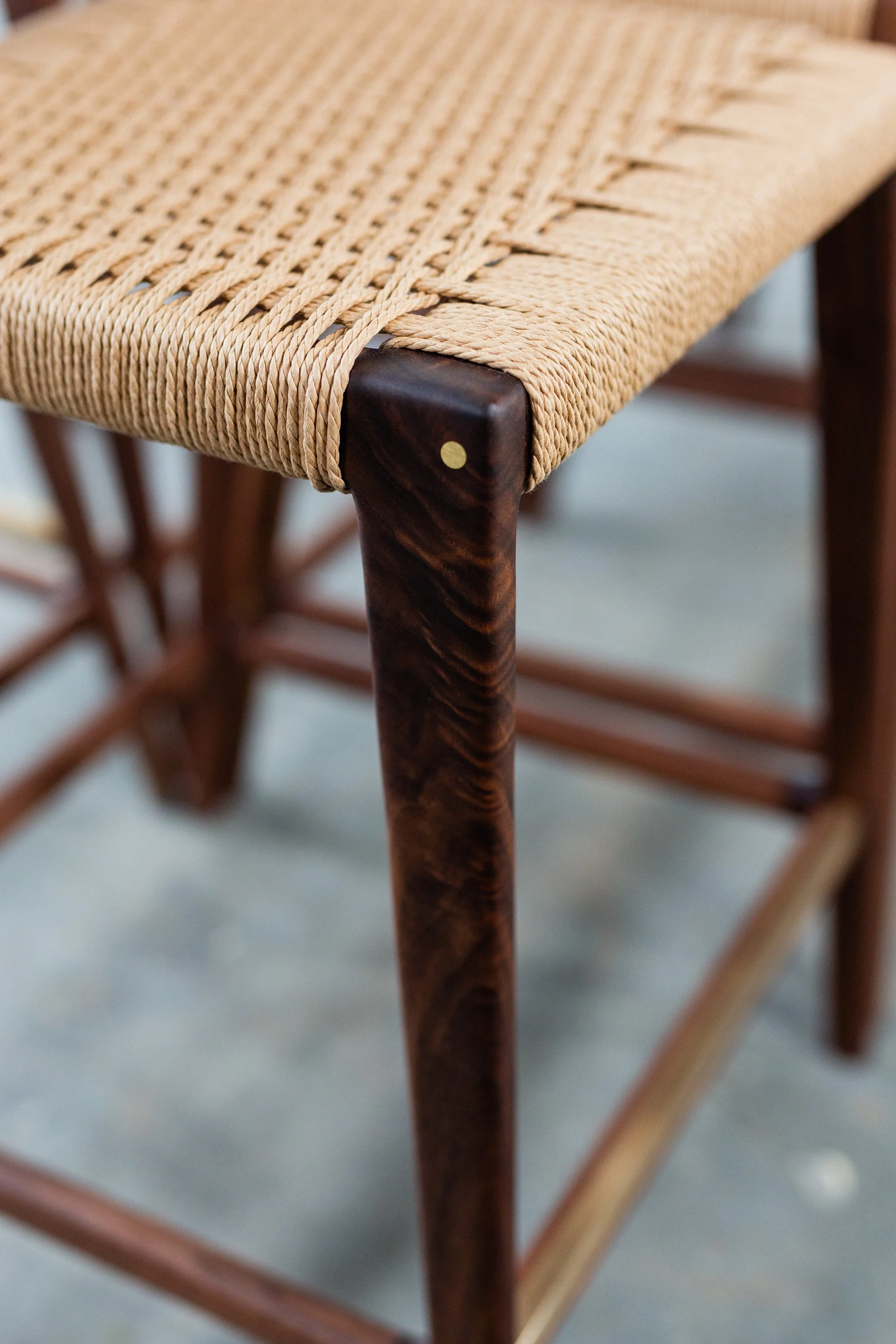 The seat on the Travis stool is woven with Danish cord - a highly durable paper cord. It gives the seat just the right amount of give making for comfortable & enjoyable extended sitting.